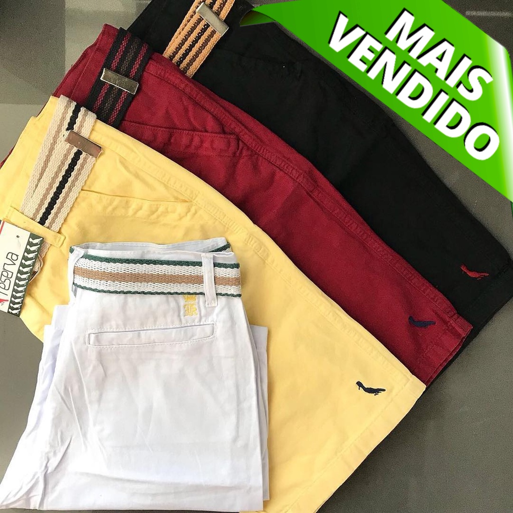 Bermuda de Sarja Masculina Com Cinto Promoção Tendência Natal Ano Novo
