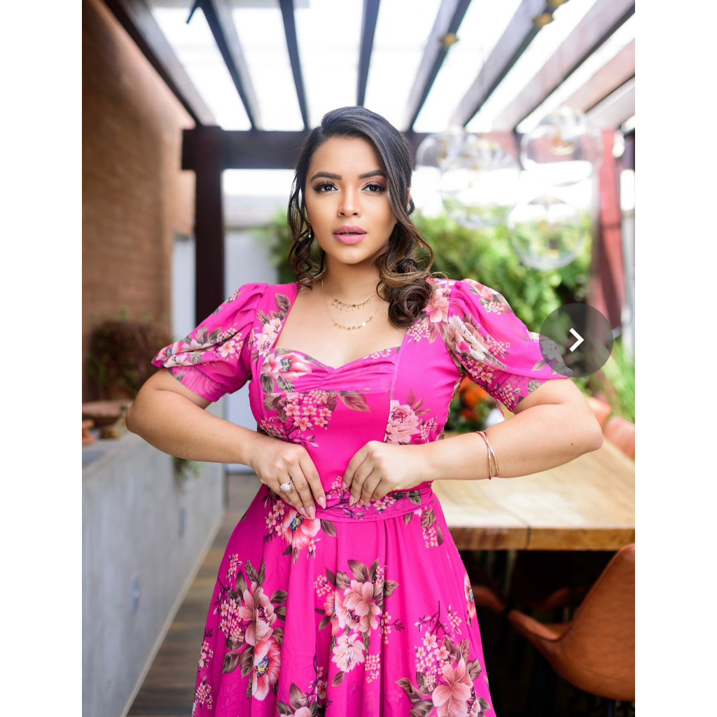 Vestido Midi Evangélico Plus Size em Tule Estampado Festa e Casamento
