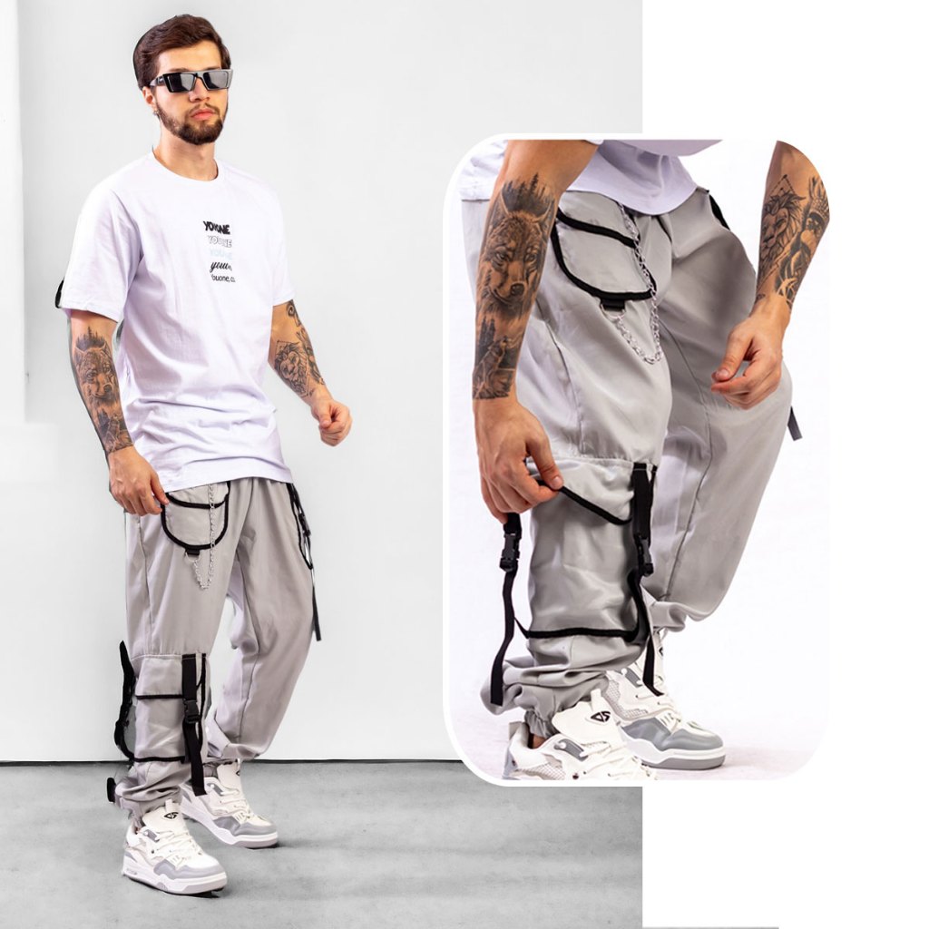 Calça Cargo Jogger com elastico de Tactel Estilo Gringa com Cordão e Corrente Coreana Estilosa