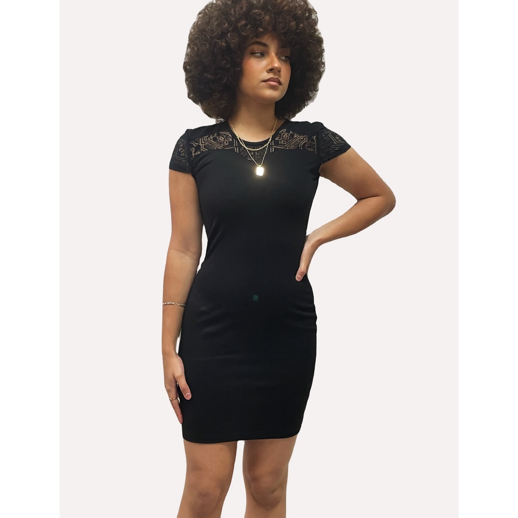 Vestido Midi Manga Curta Canelado Preto fashion salvatore