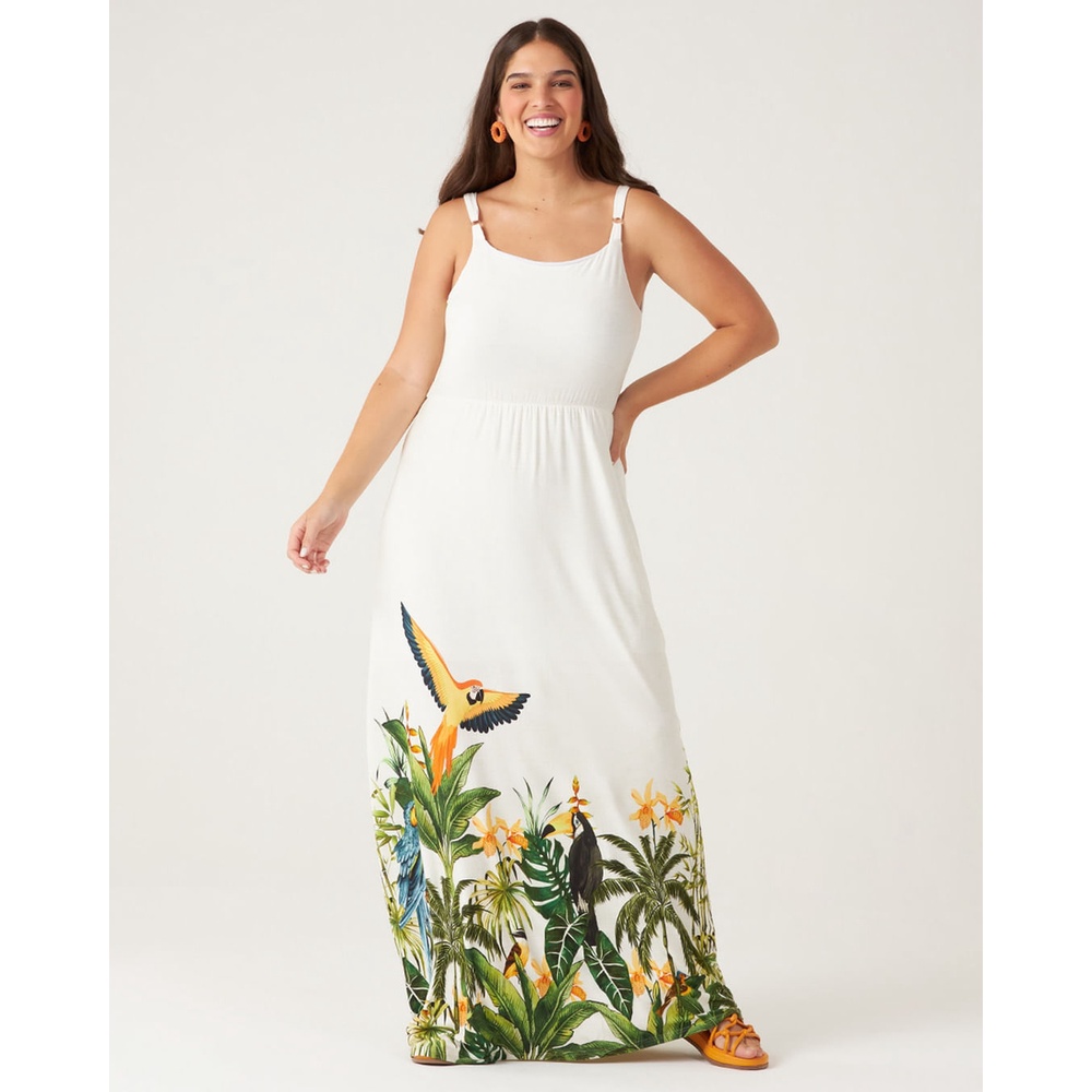 Vestido Feminino Plus Size Midi Araras Alças Finas Em Viscose Stretch