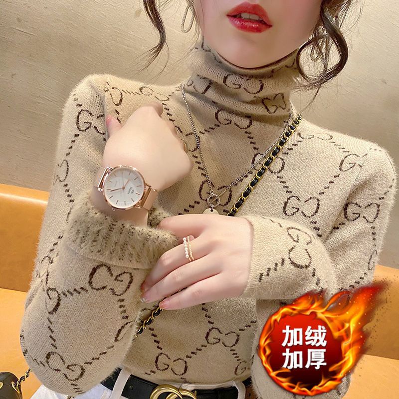 blusa tricot manga longa tricot de frio feminina grossa roupas gola alta moletom Suéter De Lã Feminino Plus Size De Veludo Grosso Com Gola Média