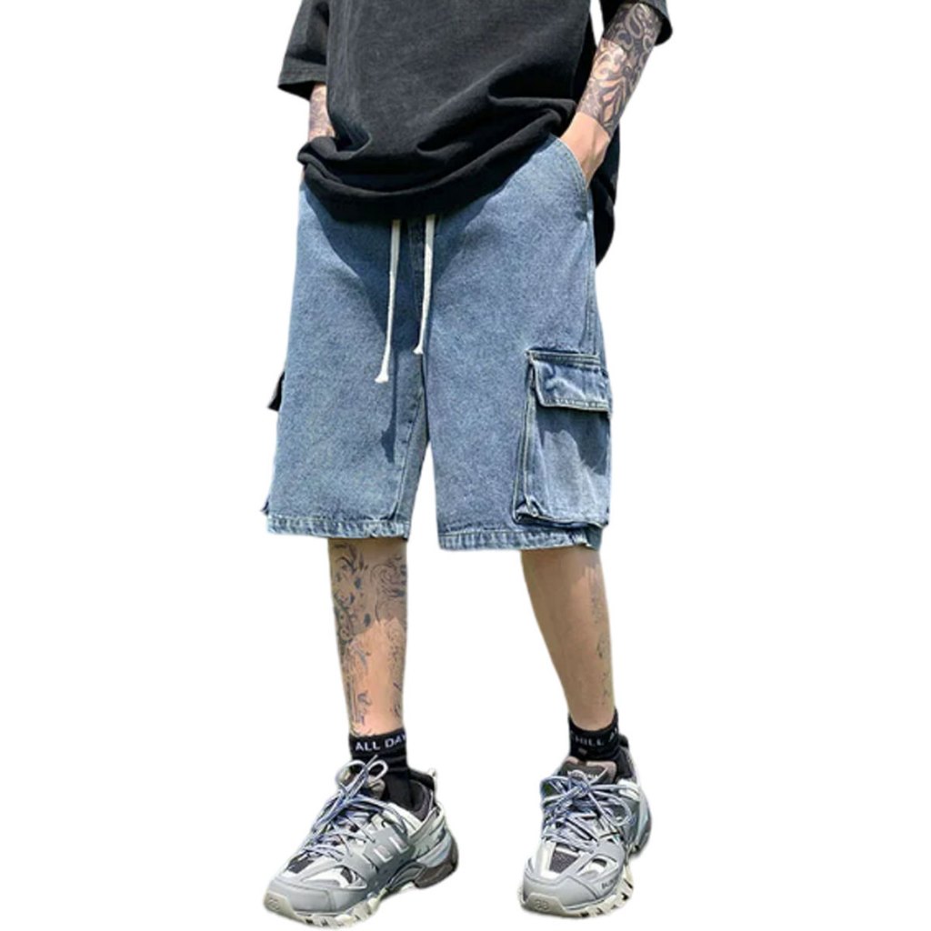 Bermuda Cargo Jeans Larga Premium com 6 Bolsos Bermudão a Baixo do joelho Estilo Skatista Rapper Estilosa