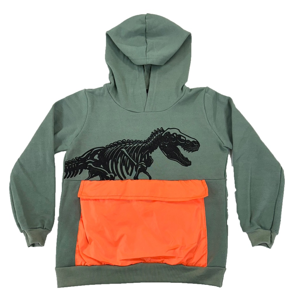 BLUSÃO DE MOLETOM INFANTIL COM ESTAMPA DINOSSAURO E BOLSO TACTEL