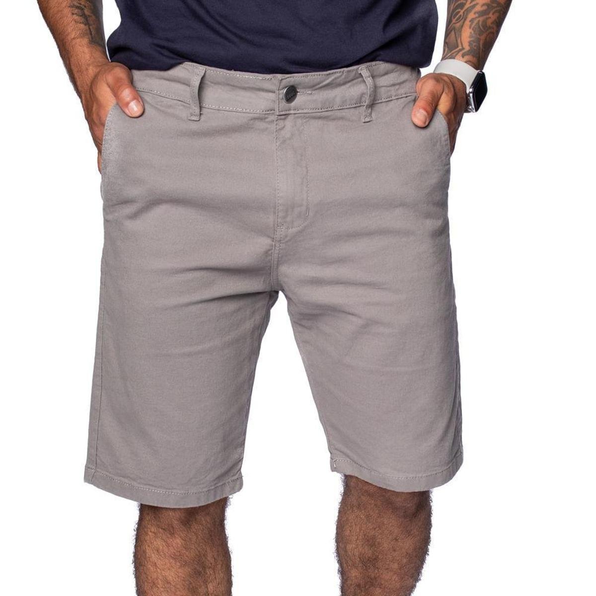 bermuda reta de sarja chino cinza médio