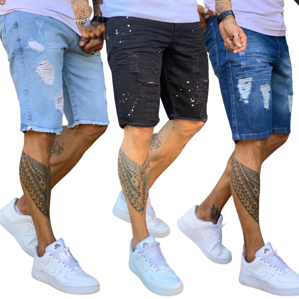 Kit 3 Bermuda Jeans Cargo Masculina Tactel Sarja Elastano Linha Premium Tendencia