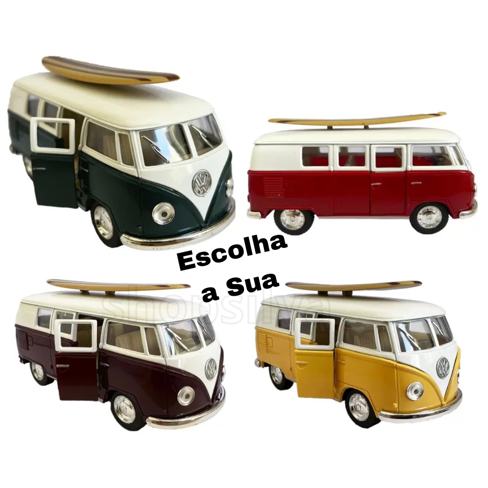Miniatura Carrinho Volkswagem Kombi Com Prancha 1963 abre a porta original