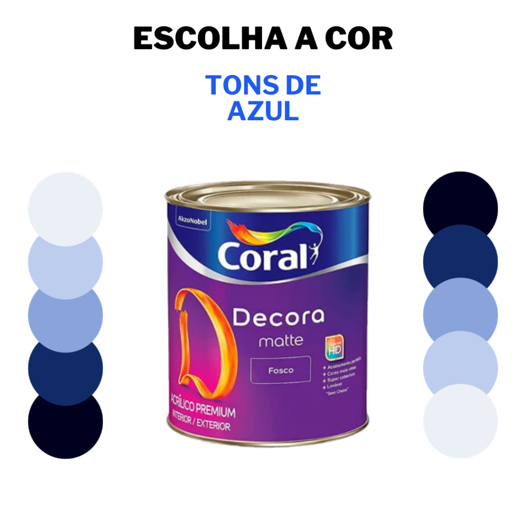 Tinta Parede Fosca Coral Tons de Azul Premium Decora Matte 800ml Cores Azuis Escolha o Tom