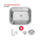 Tanque Em Inox De Encaixe Hera 50x40cm 3.1/2' Com Válvula 94400/107 Acetinado Tramontina com Sifão Sanfonado Universal Simples 1.1/2"