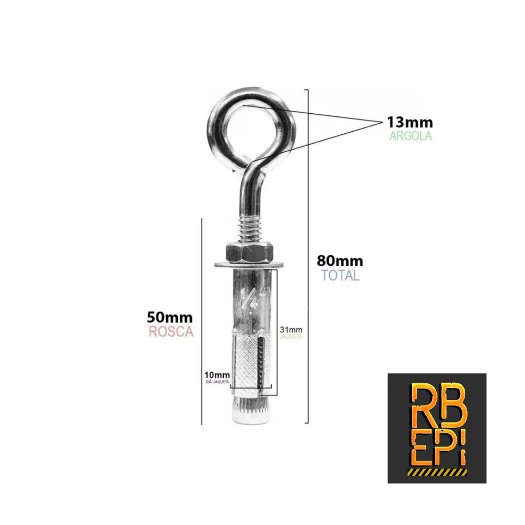 Chumbador Cba Com Olhal Pitão 1/4 X 2 Completo - 12 Peças