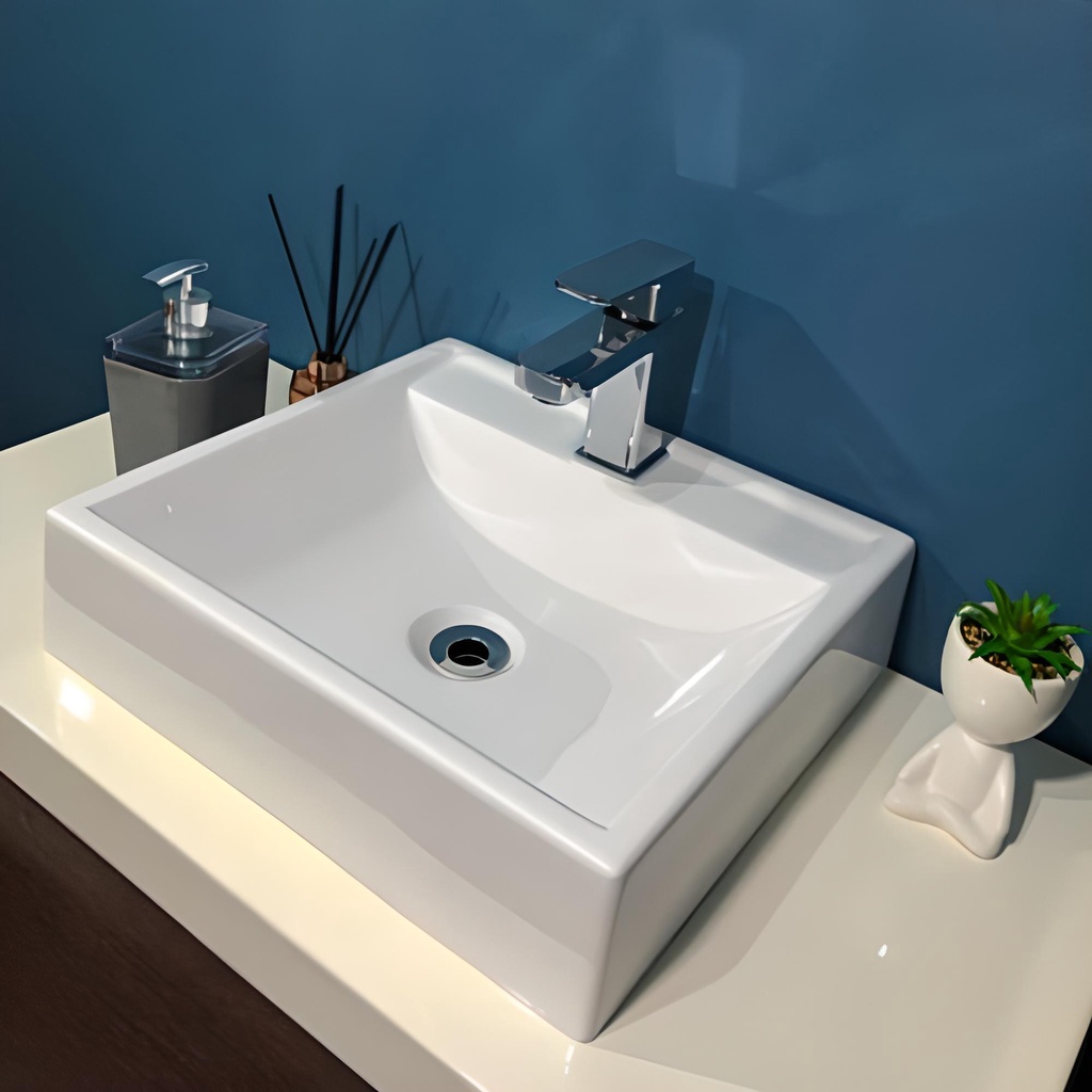 Cuba de Apoio Quadrada 46x46x15cm Louça Branca