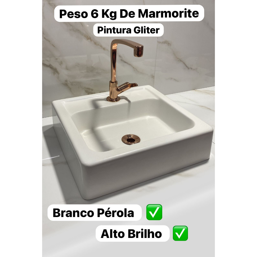 Cuba De Apoio Perolizada No Glitter Perola Branca Banheiro Quadrada