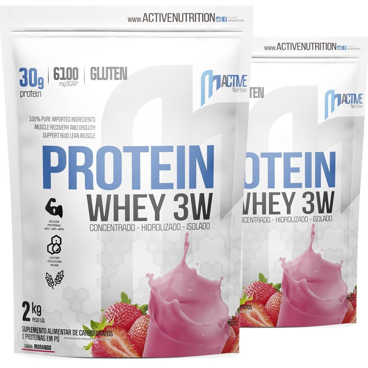 Kit 2X Whey Protein Isolado Concentrado Hidrolisado 3W Active Nutrition 4Kg