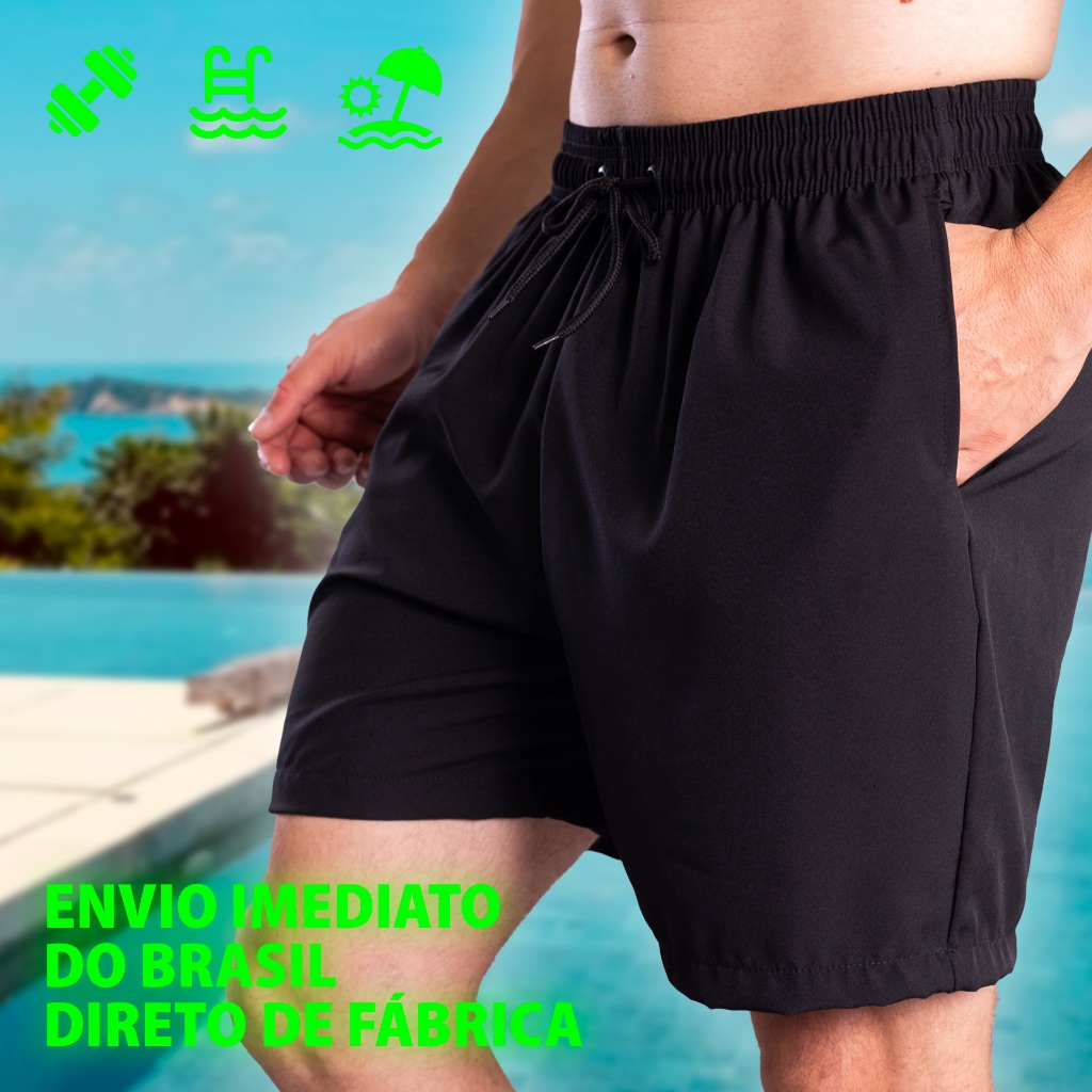 Bermuda Masculina Plus size Short Nobre G1 G2 G3 Praia Verão Caminhada Tactel Elastano Dia Dia 3 Bolsos Bolso Traseiro Piscina Cordão de ajuste Bolso Anti Areia
