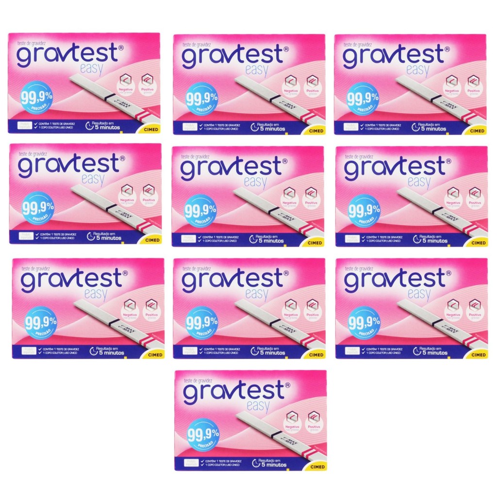 Kit com 10 Teste de Gravidez Gravtest Easy Cimed 99,9% Precisão