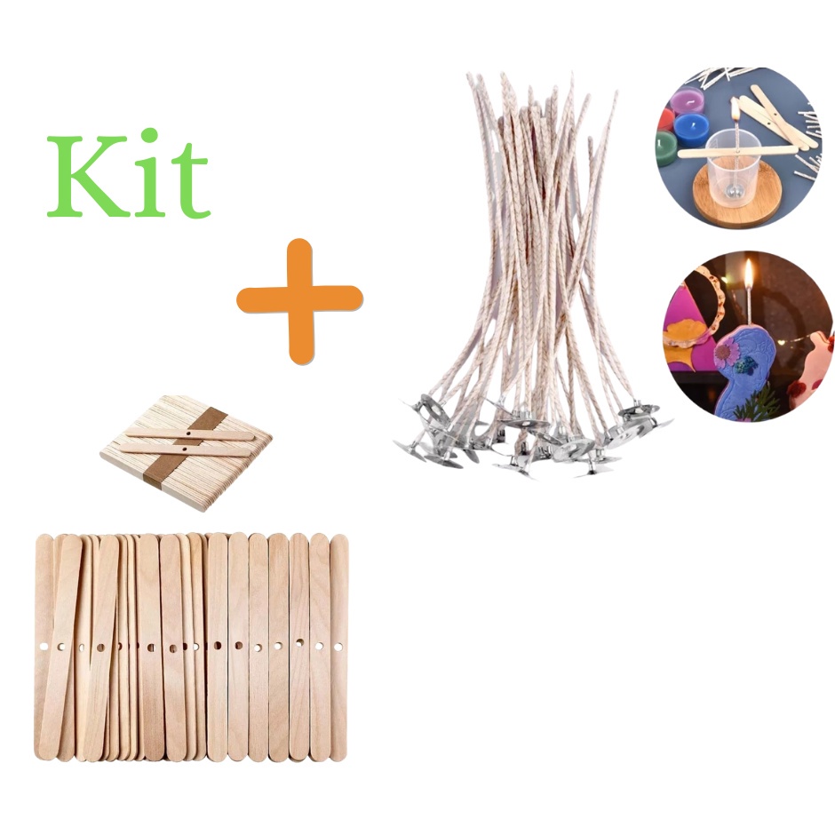 Kit 10 Suporte Madeira P/ Pavio + 20 Pavio 10cm 100% Algodão P/ Velas Artesanais