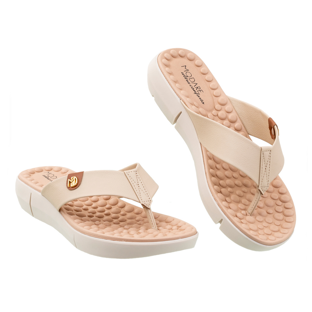 Chinelo de Dedo Creme Preto Pêssego Feminino Tamanco Salto Médio Esporão Macio Modare Original Rasteira Sandália Palmilha Massageadora com Bolhas Ortopédico