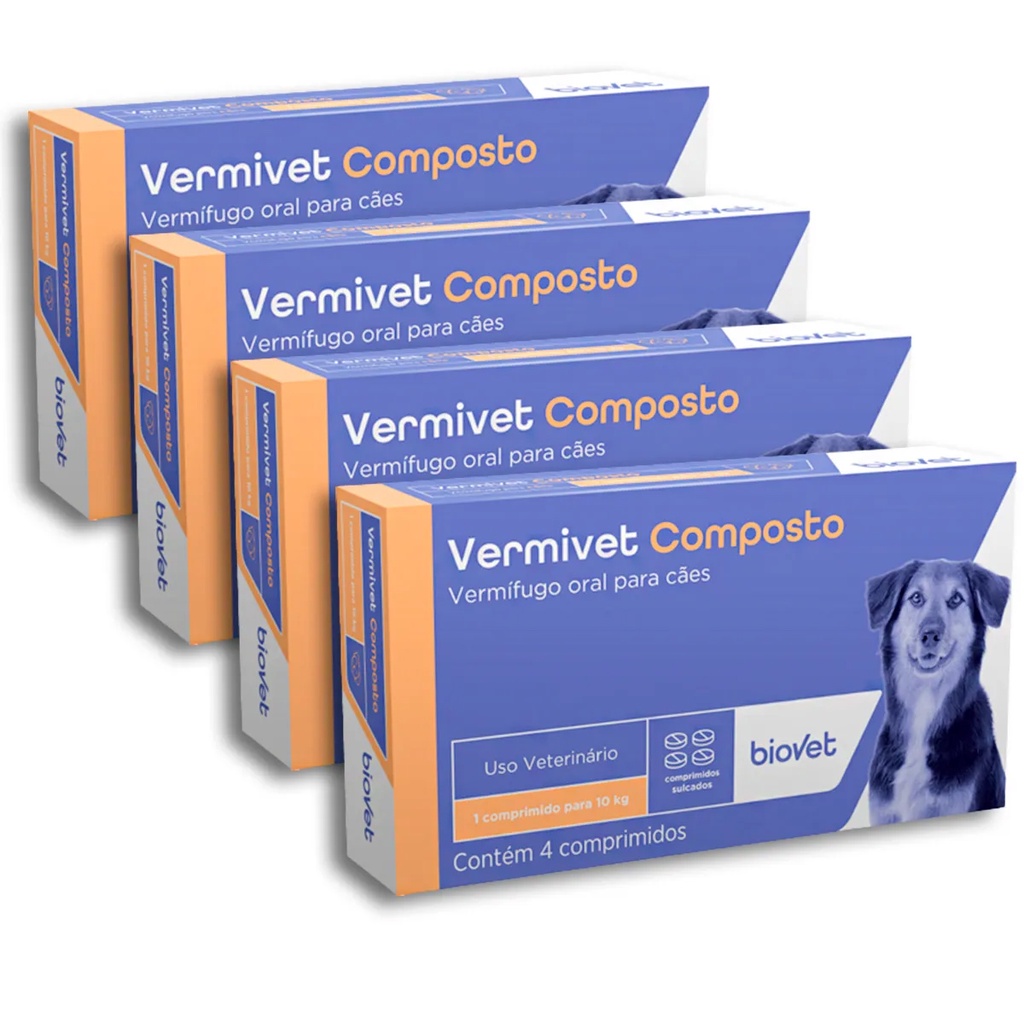Kit 4 Caixas Vermífugo Vermivet Composto - 4 Comprimidos 600mg Cada - Cães e Gatos - Biovet