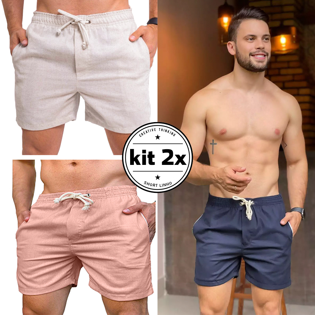 Kit 2 Shorts Linho Premium Bermuda Mauricinho Masculina Slim