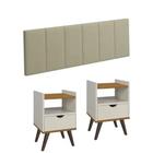 Conjunto Cabeceira Casal 1,40 Julia Bege com Kit 2 Mesas de Cabeceira rpm Off White/Canela - Lojas rpm