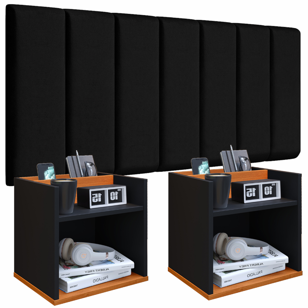 Conjunto Cabeceira Casal 1,40 Julia com Kit 2 Mesas de Cabeceira rpm - Preto - Lojas rpm