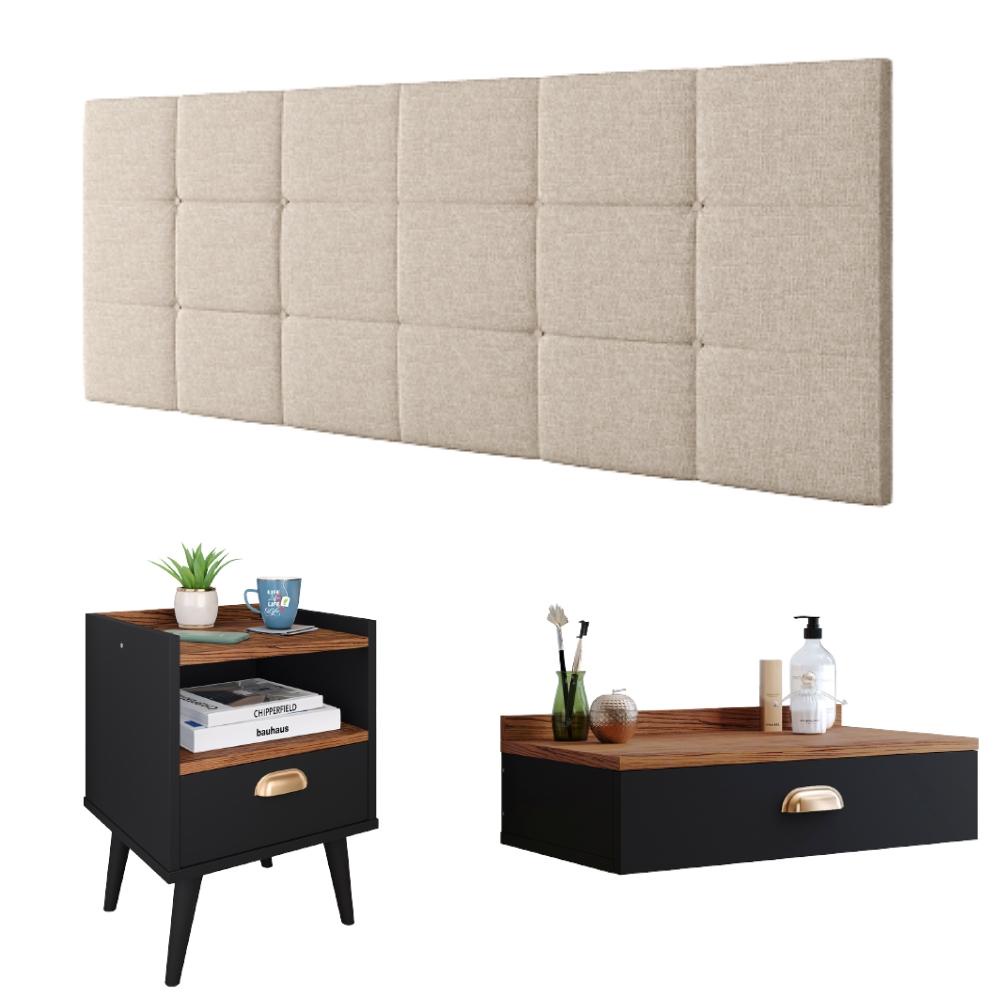 Conjunto Cabeceira Suspensa Cama Casal Box 1,40 e Kit 2 Mesinhas Quarto Com Prateleira e Gaveta Branco/Preto - Lojas RPM