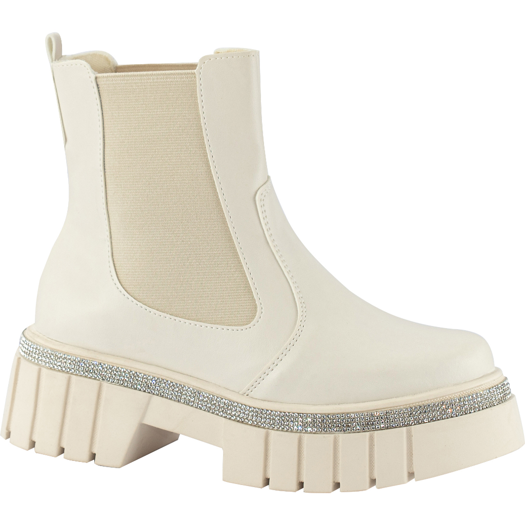 Bota Chelsea Feminina Coturno Strass Brilho Cristal Confortável Plataforma Cano Curto Blogueira Fashion Macio Tratorada