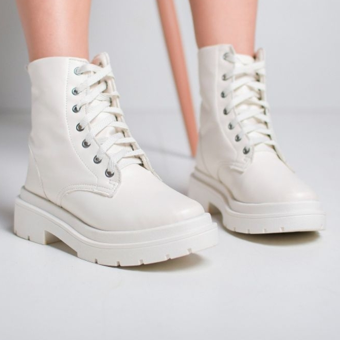 Bota Feminina Coturno Biker Tratorada Cano Curto Preto Off Branco Inverno