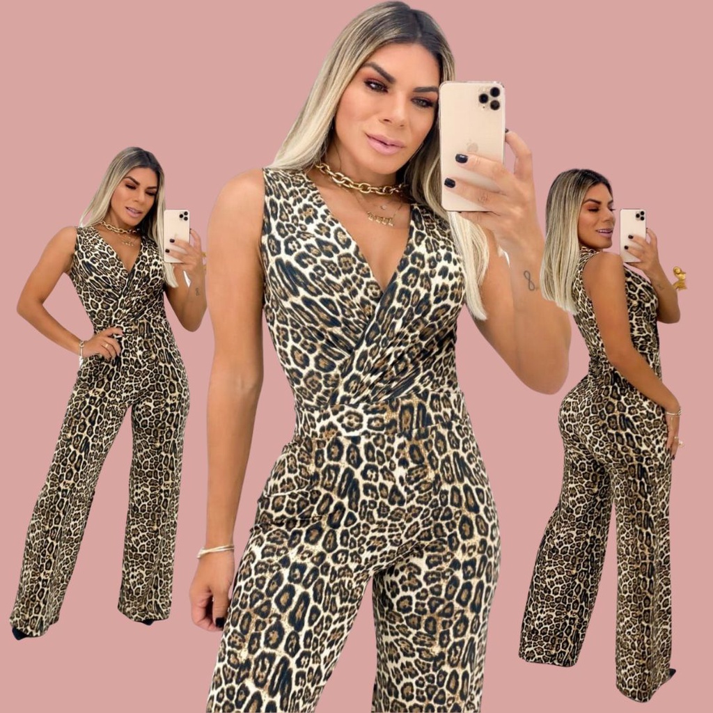Macacão pantalona de oncinha Animal print LANÇAMENTO!