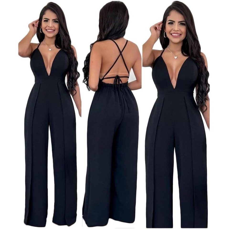 Macacao Pantalona Feminino Social Decotado Alcinha 2 Fendas