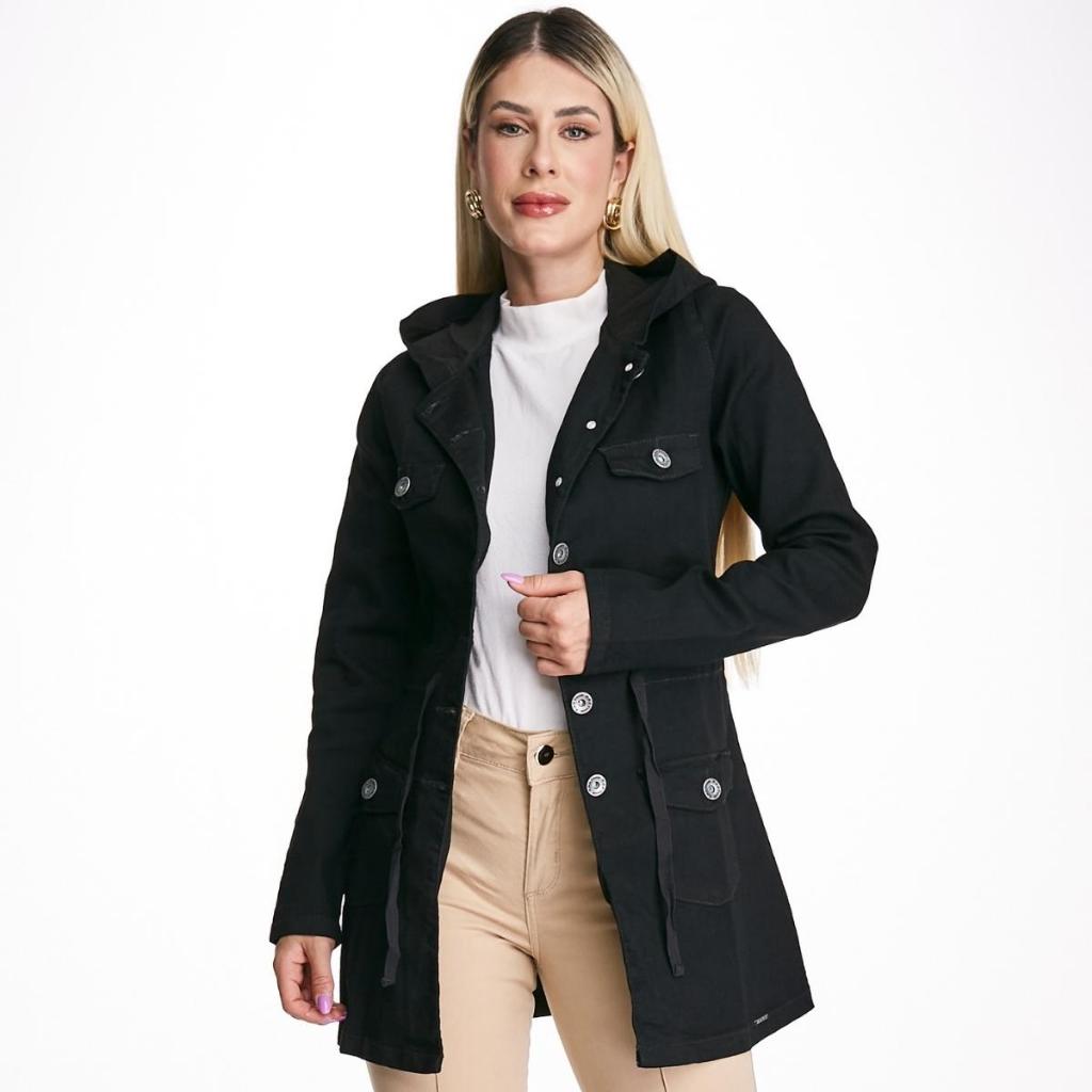 Jaqueta Jeans HNO Jeans Influencer Parka Premium Com Capuz Preto