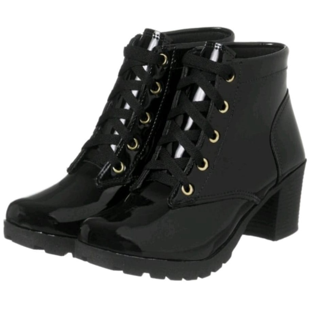 Bota Preta Feminina Botinha Coturno Salto Baixo Cano Curto Tratorada Ref. 20/111