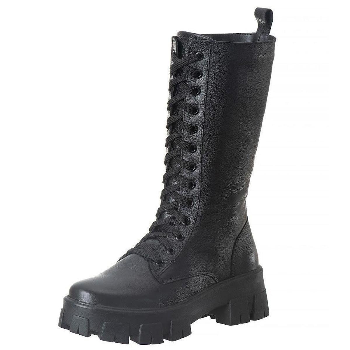 Bota Coturno Couro Plataforma Tratorado Agnes Veronez Preto