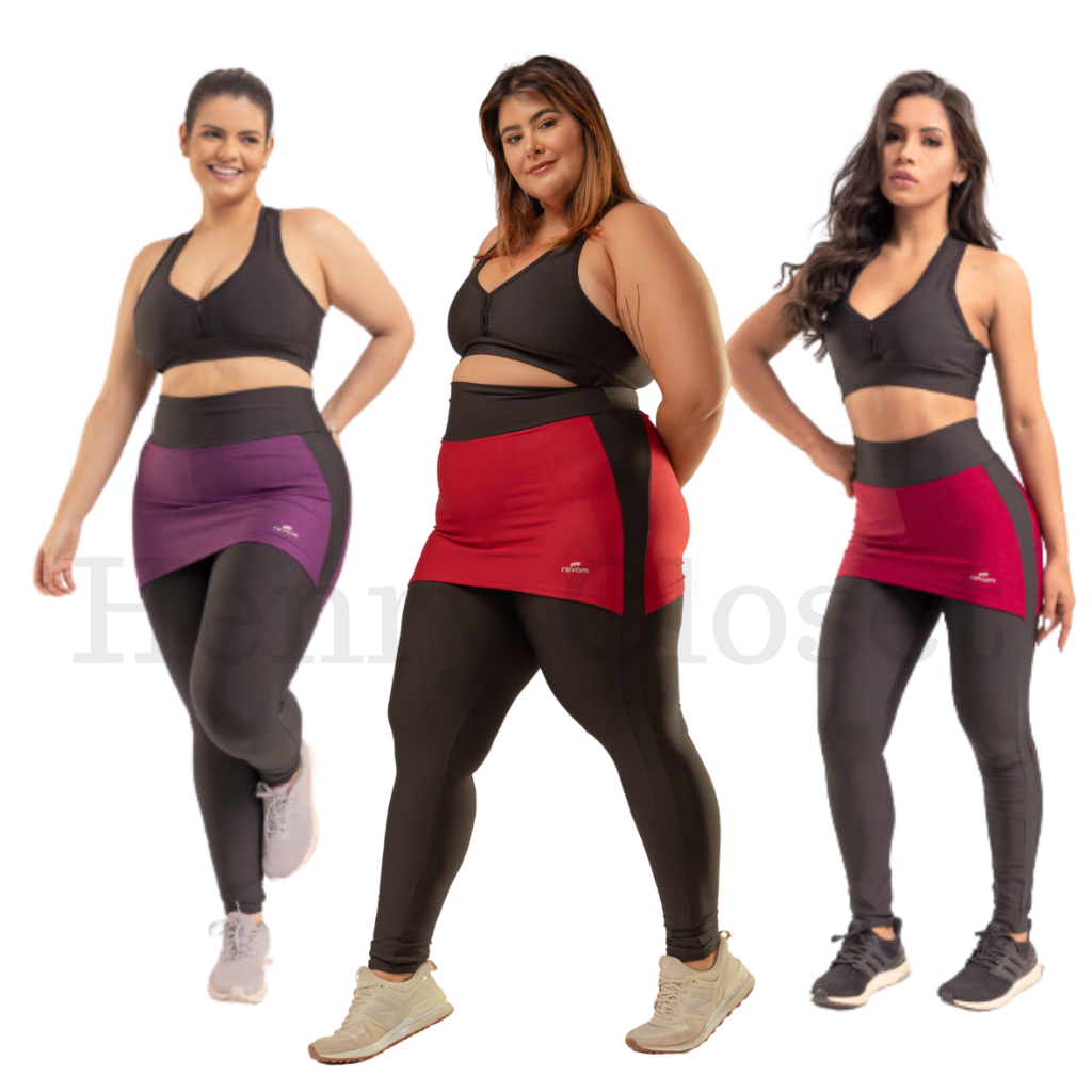 Roupa de Academia Calça Legging Feminina Suplex Fitness com Saia Tapa Bumbum Plus Size 38 ao 52