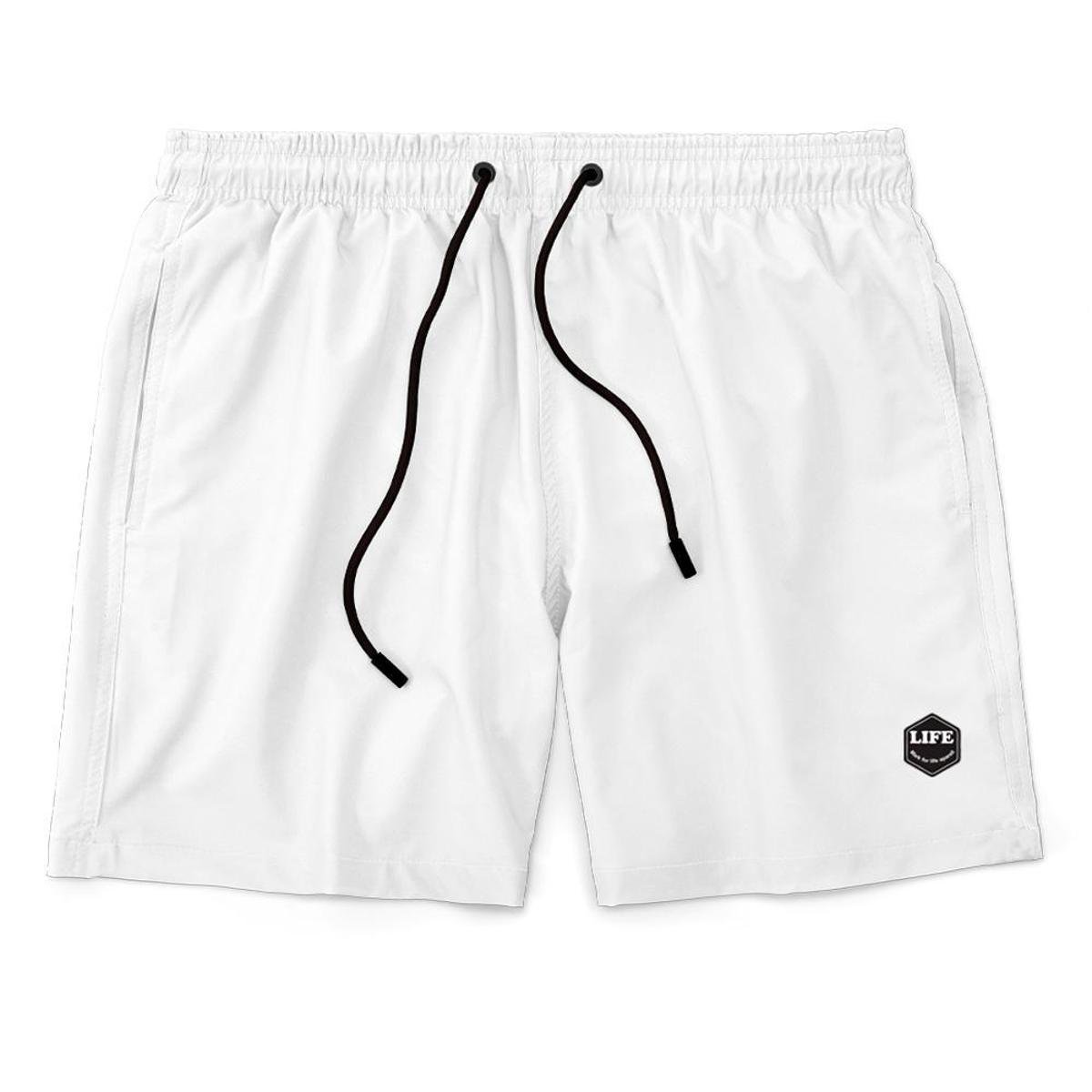 Short Resina Bermuda Praia Tactel Liso e Estampado Listrado Masculino Mauricinho Azul/Branco