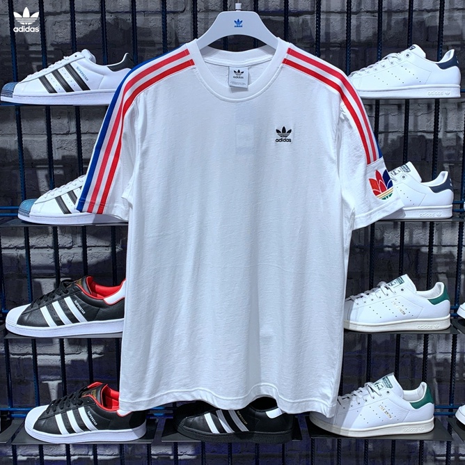 Adidas100 % Clover Men's Contrasting Stripe Overlap Bordado Com Listras De Contraste Logotipo T-Shirt Casal De Algodão Malha Clássica Manga Curta Top GE0836