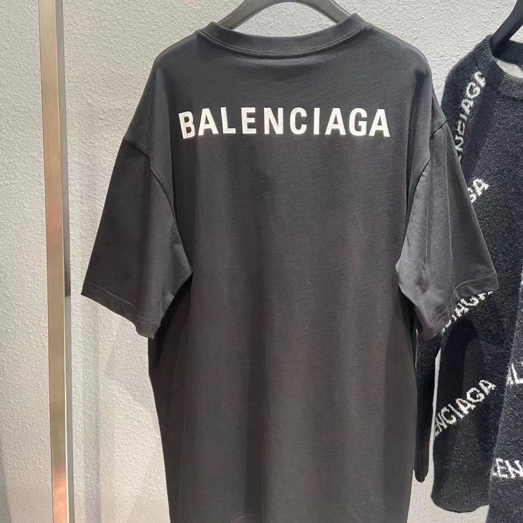 Marca de moda clássica Balenciaga antes e depois, decote redondo impresso com letras de algodão de manga curta folgadas T-shirt para homens e mulheres W8OW