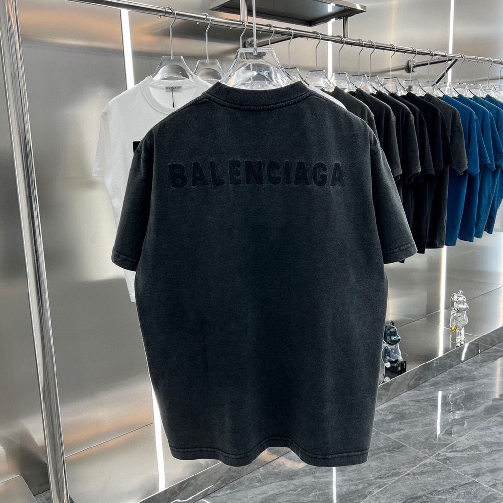 Alta qualidade Balenciaga2024 início da primavera Novo Paris ferry letras com gola redonda de manga curta T-shirt de algodão para homens e mulheres com meia manga solta