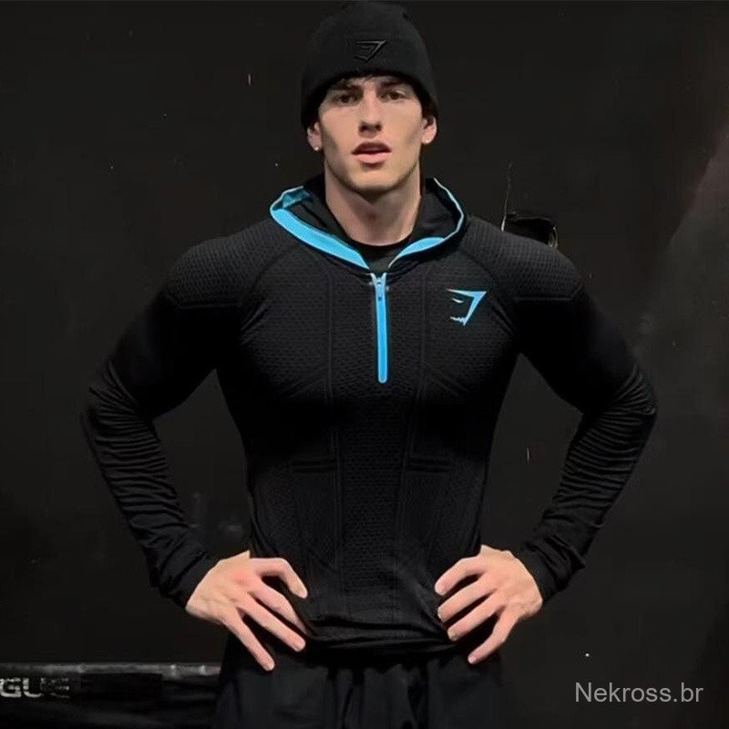 GYMSHARK Camiseta Masculina com Zíper 1/4 Vital Sem Costura Slim Fit Secagem Rápida Stretch Pequeno Logo Manga Longa