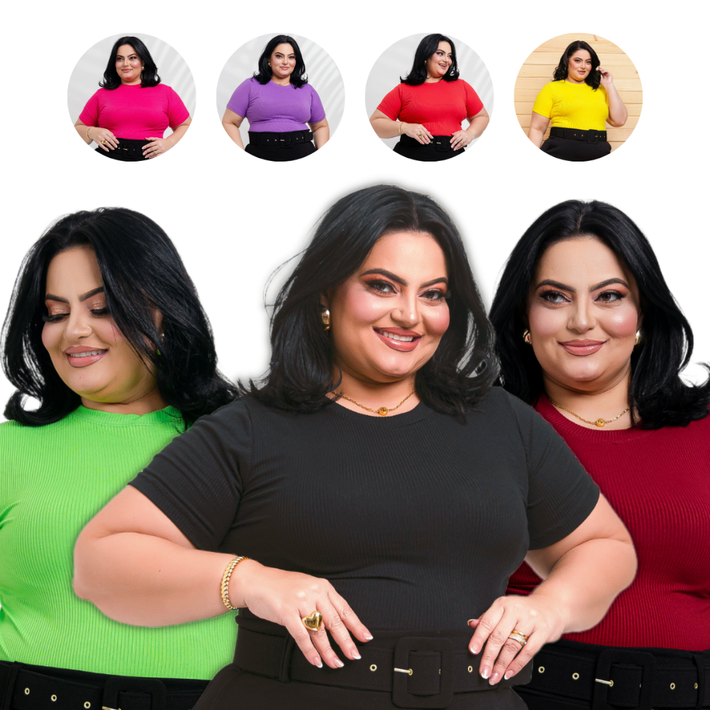 Kit 3 Blusa Plus Size Feminina Suede Canelado T-shirt Basica