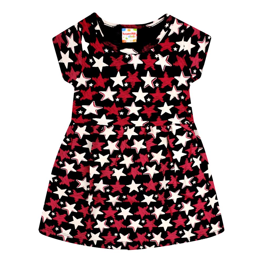 Vestido Infantil Manga Curta Meia Malha Preto Estrelas (4/6/8) - Brandili
