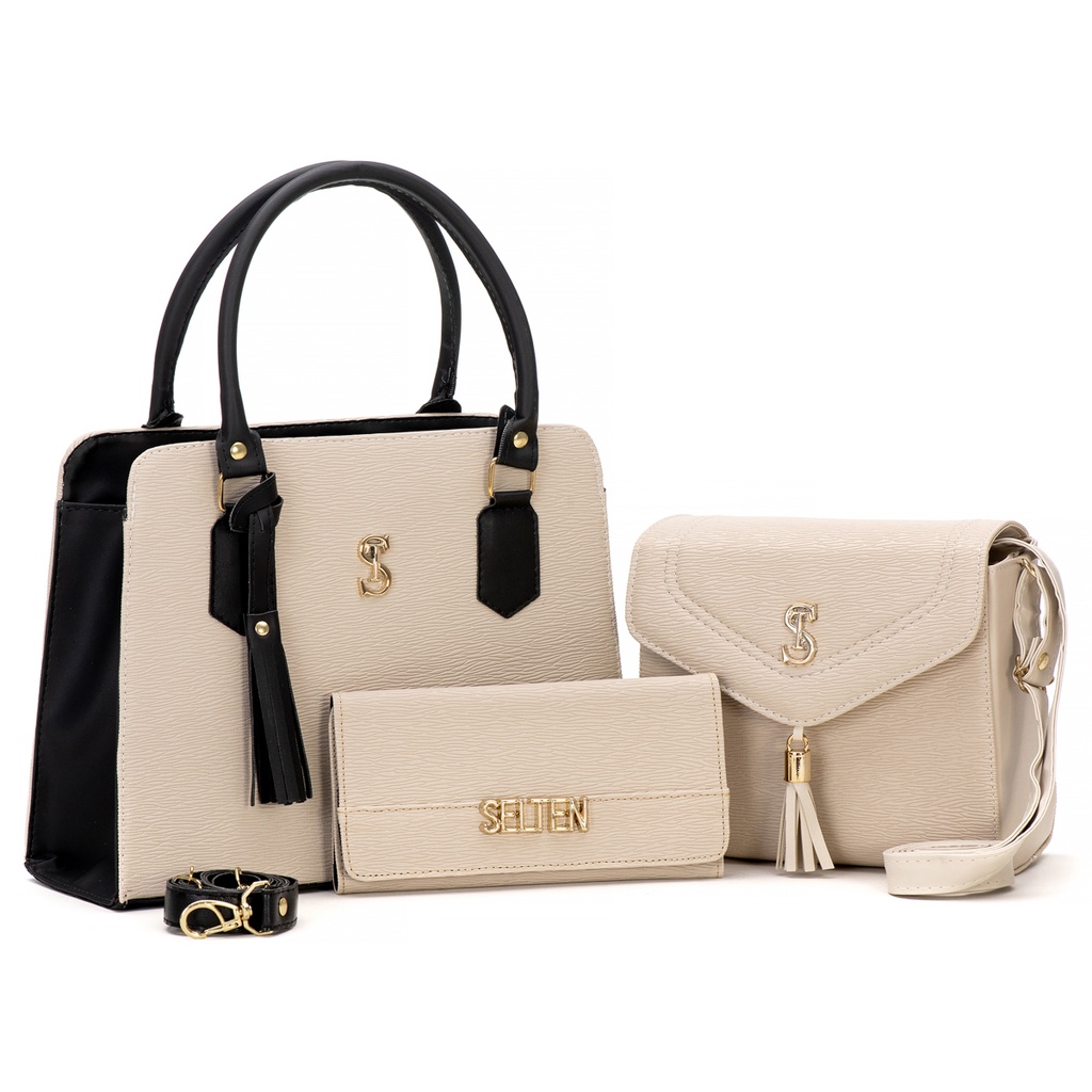 Bolsa Feminina Transversal e de Mão com Carteira Kit Selten