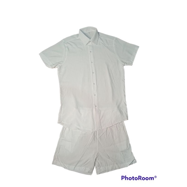 Conjunto Camisa e Short de Linho Branco e Off White Masculino