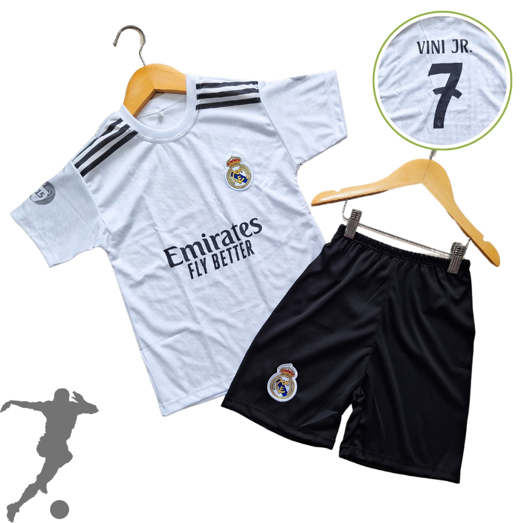 Conjunto Infantil de Time Futebol Vini BRANCO/PRETO LISO GB Camisa e Short Envio Imediato