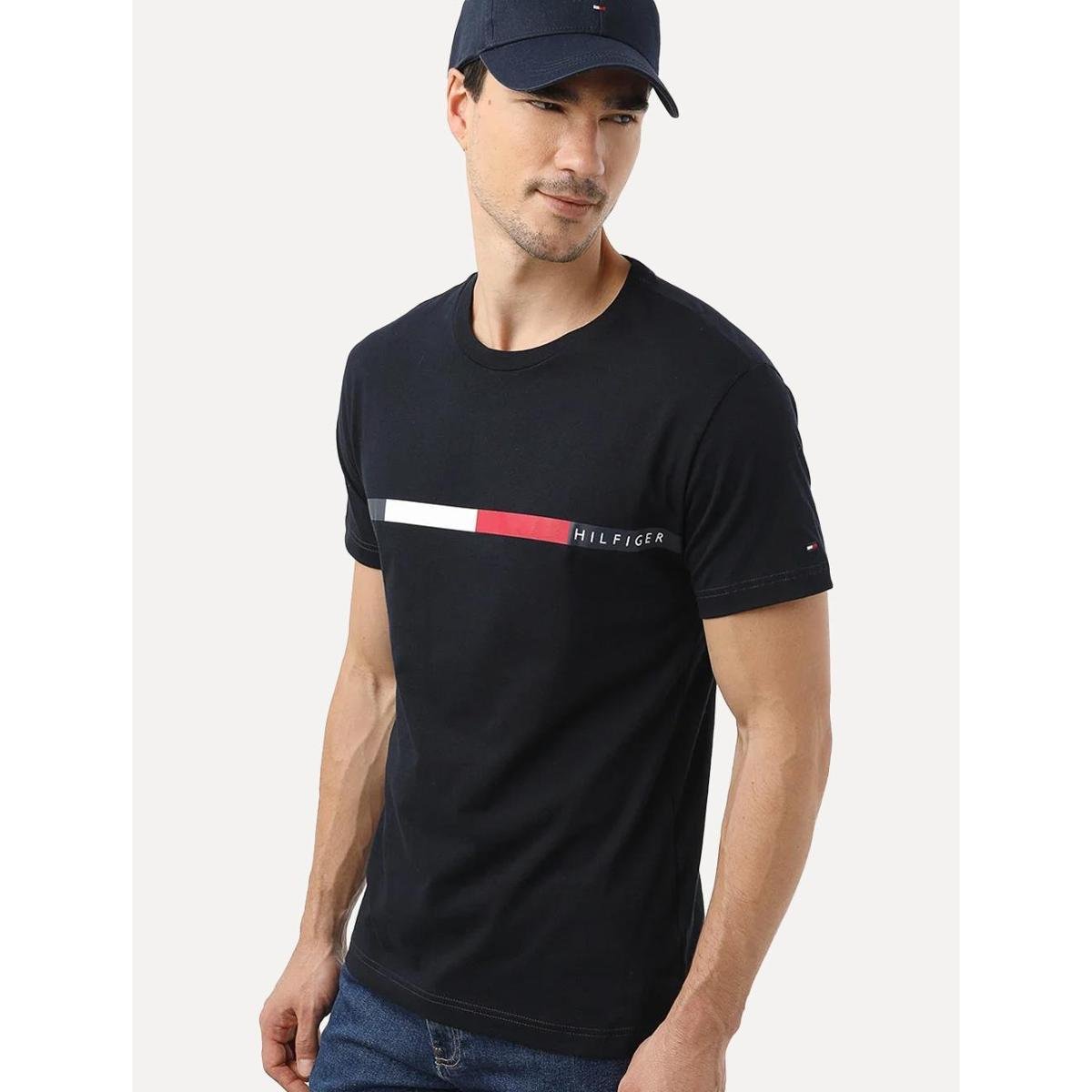 Camiseta Tommy Hilfiger Masculina Chest Bar Graphic Azul Marinho