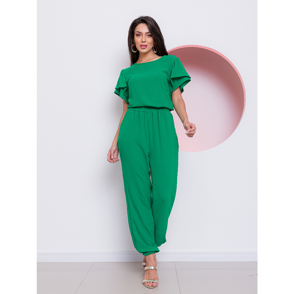Conjunto Feminino Calça Jogger e Blusa de Manga Curta com Babado
