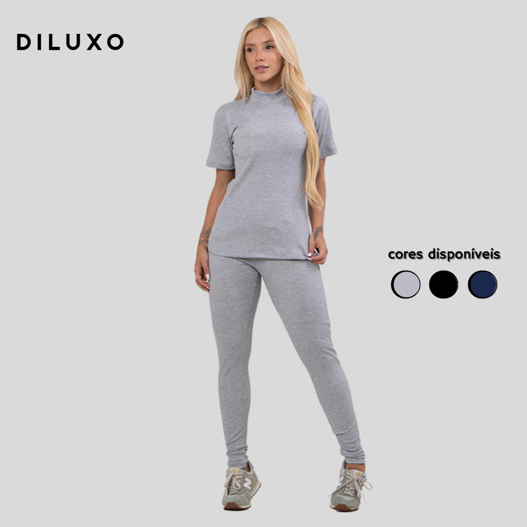 Conjunto Calça e Blusa Manga Curta Canelado Gola Alta Inverno Feminino