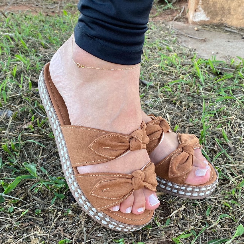 Sandália Anabela Feminina Casual Dois Laços Confortável Solado Antiderrapante Plataforma