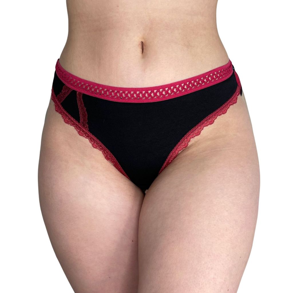 Kit 2pçs Calcinha Renda SHE LINGERIE Fio Dental Lisa Lilás/Preta
