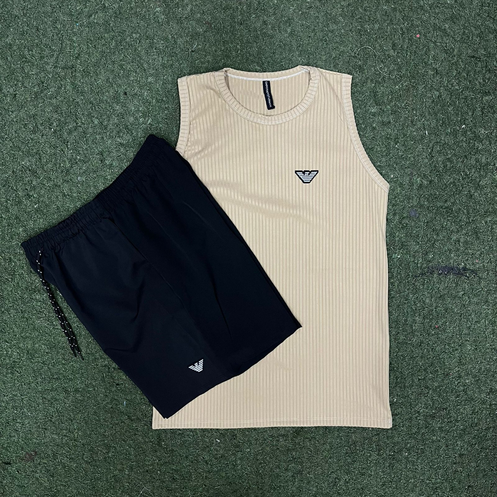 Conjunto Canelado Masculino Camisa Canelada Coladinha no Corpo + Short Moda Praia